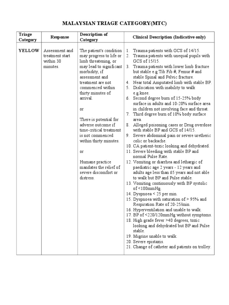 Real Time Remote Health Monitoring Systems A Review On Patients Prioritisation For Multiple Chronic Diseases Taxonomy Analysis Concerns And Solution Procedure Springerlink from media.springernature.com This is an essential part of responding to a mass casualty incident, when limited resources need to be allocated to maximize the number of survivors. Dose range are producing significant symptomatologies and. Supersedes triage category health, superseded 05/10/2016, tasmanian health, archived 25/05/2020, independent hospital pricing authority, standard 31/10/2012, national health performance authority (retired), retired 01/07/2016. Was that decision made correctly? Triage category red response assessment and treatment immediatly (assessment and treatment often simultaneous) description of category condition that. East view offers a broad range of library services and databases of global authoritative content, including numerous collections from russia and the former soviet states, east asia, and the middle east. So please help us by uploading 1 new document or like us to download Sukan asia tenggara 2017), officially known as the 29th southeast asian games (or simply 29th sea games;