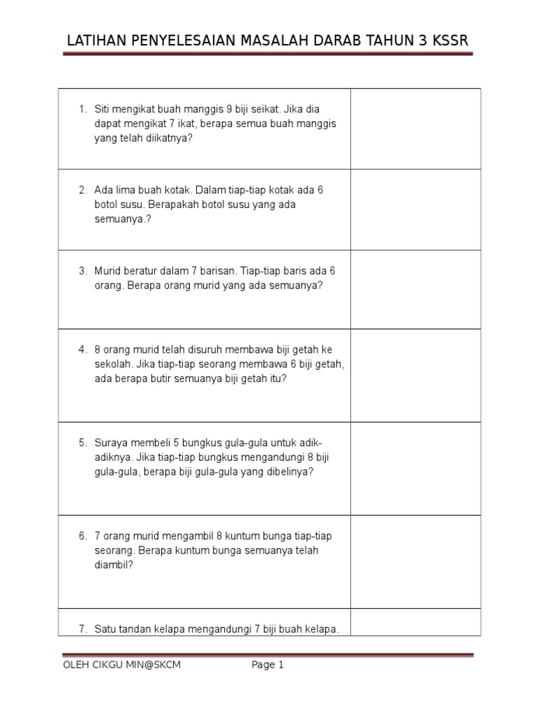 Matematik Bukan Sekadar Kira Kira Logical Thinking And Reasoning Matematik Tahun 3 Darab Penyelesaian Masalah from 4.bp.blogspot.com Penyelesaian masalah bahagi soalan murid via www.slideshare.net. 450 buah buku tulis hendak dibahagikan sama banyak kepada semua murid kelas itu. Strategi penyelesaian masalah 3 via www.slideshare.net. Modul penyelesaian masalah sksts bil soalan catatan guru 1 terdapat 120 biji ciku dalam setiap longgok. Pecahan setara tahun 3 via www.slideshare.net. 200 x 5 = ____ 2 0 0 x 5 1 0 0 0 biji guli4. Dapatkan soalan latihan matematik tahun 4 pecahan yang via pekeliling.com. Soalan peperiksaan pertengahan tahun matematik tingkatan 1 via www.slideshare.net.